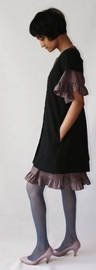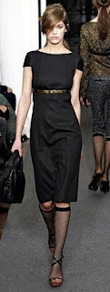 Mine is a a linen Mollie Paris New York. Hard to see with black but it's got some nice detail work around the neck, the little buttons down the front, pleats at the hips. It fits me perfectly, but I don't have a photo of me in it because I just don't wear it that often. It's really a day dress, from cut and fabric, not an evenign piece and I tend to opt for color of day. Still it has been trotted out for events because I will take it as a back up, but then I always forget to photograph it. I tend to pair it with cream, a little like this . . .